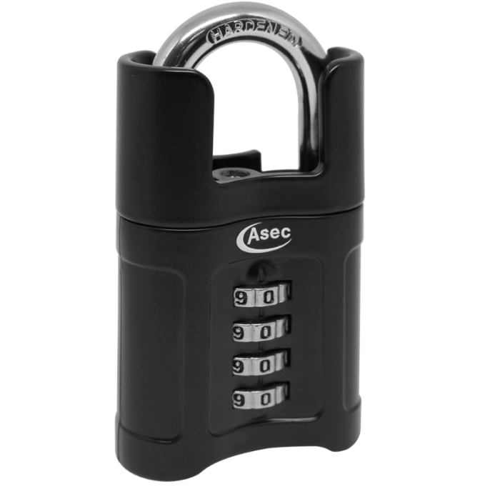 The Asec closed shackle 4-digit combination padlock features a shroud protected hardened steel shackle and quality zinc body with tough corrosion resistant coating. High precision and clear dialling function makes the padlock easy to set to any of the 10,000 possible combinations.